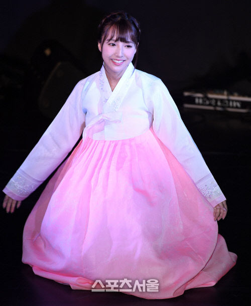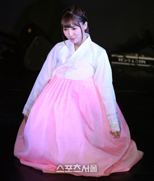 三上悠亜が秋夕を迎え、韓服を着てお辞儀している。 2017.10.1
