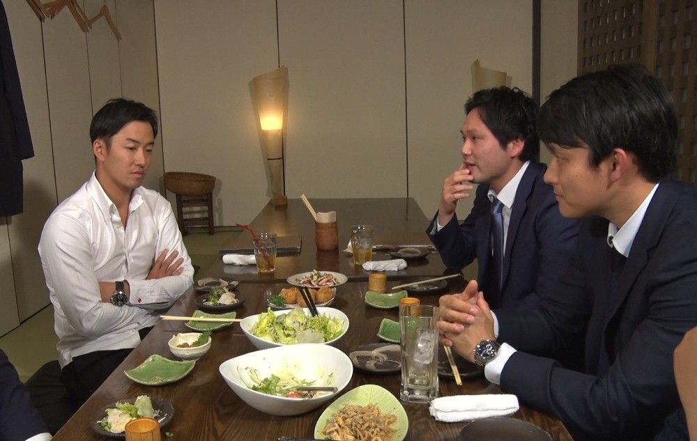 元チームメートの話を神妙な表情で聞く斎藤佑樹(C)TBS Photo By 提供写真
