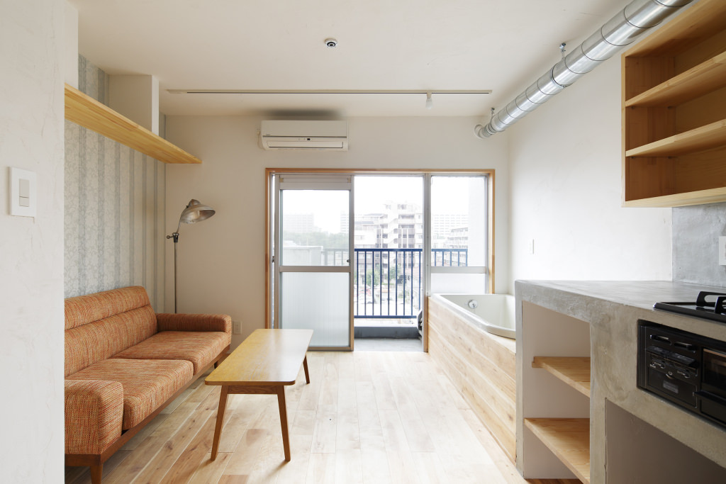 バスタブがあるのは、広めに作られたキッチンの真横。