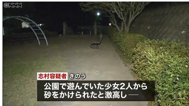 暴行の疑いで現行犯逮捕されたのは、神奈川県横浜市旭区に住む、自称・無職の志村将吉容疑者。 警察によると志村容疑者は3日、公園の砂場で遊んでいた中学2年生と小学3年生の少女2人から 砂をかけられたと激高し、少女らを土下座させた上、足を蹴る暴行を加えた疑いがもたれている。少女らにケガはなかった。