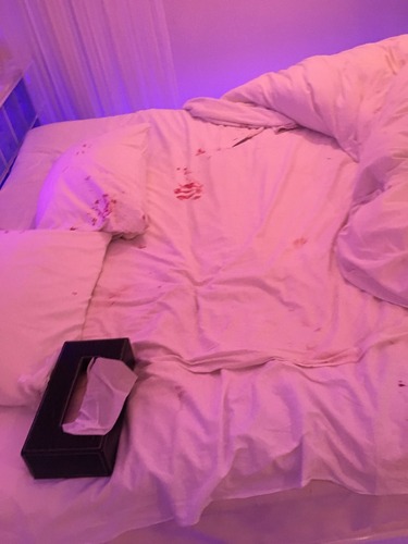 デリバリーヘルス(通称:デリヘル)の女性がホテルで客に切りつけられる殺人未遂または傷害事件が起き、被害者女性がTwitterに現場の画像を載せ投稿していました。