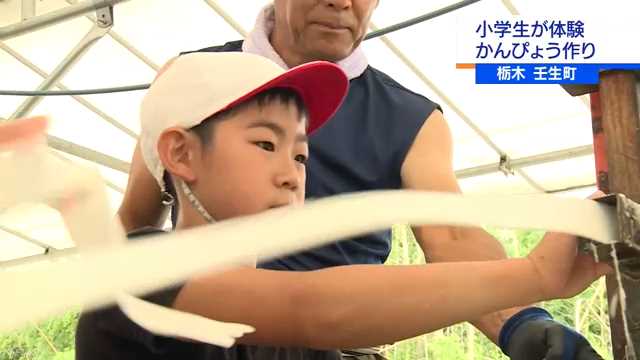 かんぴょうの生産が盛んな栃木県壬生町で地元の小学生たちが、