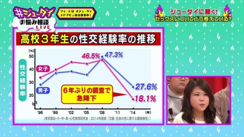 【画像】最新版の女子高校生のセックス経験率wwwwww