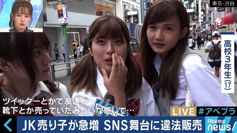 1990年代、女子高生がブルマやセーラー服などを販売する「ブルセラ」が大きな社会問題になった。平成最後の夏、それは舞台をSNSやアプリに移し急増しているのだという。11日放送のAbemaTV『AbemaPrime』では、そんな「JK売り子」になった10代少女を取材した。