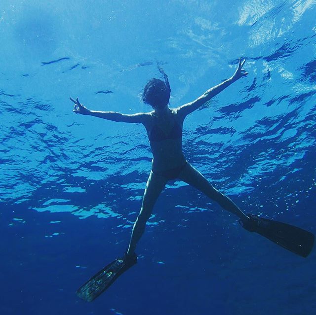「石垣blue #初skindiving #diver #お気に入りの #水着」とコメントを添え、ダイビング中の写真を複数投稿。沖縄の海でシュノーケル、フィンだけを装着したフリーダイビングを楽しんだ様子の小島は、黒のビキニ姿で気持ちよさそうに海を浮遊。