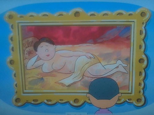 ちなみにカツオが裸婦画の前で立ち止まっていたのは、床に落ちていたキャラメルに気を取られていたせい。決して裸婦画に夢中になっていたわけではないようだ。