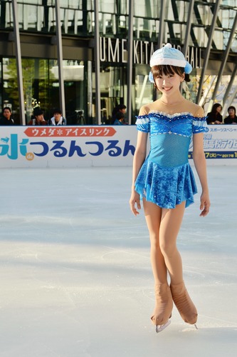 17日にJR大阪駅北のグランフロント大阪うめきた広場にオープンする「ウメダ☆スケートリンク つるんつるん」で初滑りを行った本田望結 Photo By スポニチ