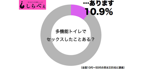 しらべぇ編集部では、アンケートサイト「マインドソナー」を使って、「多機能トイレでセ◯クスしたことある?」と質問し、その割合を調査することに。