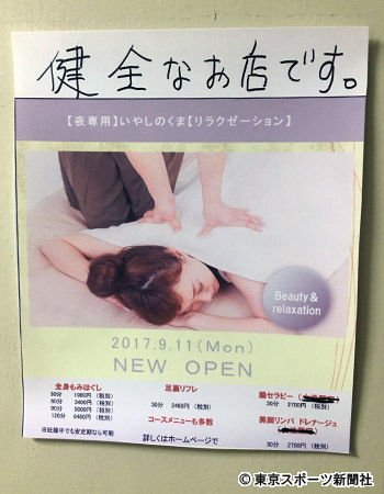「いやしのくま」を訪れると、店のドアには「健全なお店です」と張り紙が…。自分からわざわざ健全さをアピールするのはむしろ怪しすぎる。