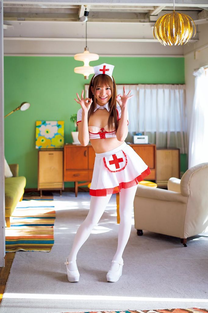 小学6年生からコミケに通っていて、コスプレイヤーとしても有名であり、本人持参のナース衣装で、撮影を進行した。