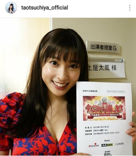 この日、土屋は出演するバラエティー番組『今だから話します! 平成最後にアスリート初告白SP』(日本テレビ系)を告知。テレビの台本を持って、カメラに笑顔を向けている写真をアップした。