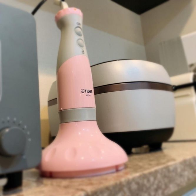 「なんだか、広告みたいになってしまった。笑」としながらも、自宅で愛用しているというブレンダーの写真を添えた。 料理に必要な基本作業を1台で簡単にできる機能を賞賛した。ブレンダーの背後には炊飯器も写っている?。