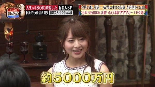 【衝撃画像】吉沢明歩さん、年収がヤバイwwwwwww