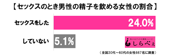 では実際「セ◯クスのとき男性の精子が飲める」という女性はどれくらいいるのだろうか? 全国の667名の女性を対象に調査した。