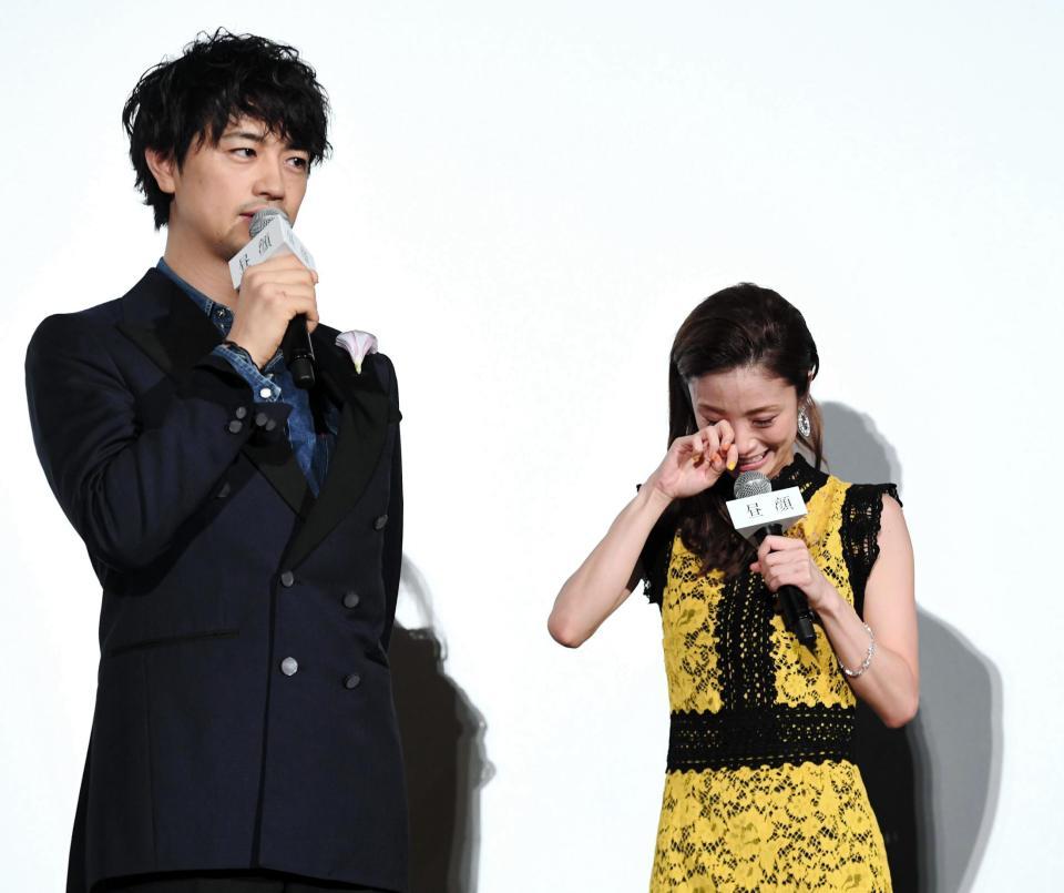イベント終盤、笑顔を絶やさなかった上戸が俳優・斎藤工(35)のコメントをきっかけに、 涙が止まらなくなった。 斎藤が「上戸さんはまわりの方に本当に尽くす人なんですよ。日々疲れ切ったスタッフに 声をかけたり。この人のエネルギーってすごいなって思った。大変なこともあると思うんですよ、 お母さんだし」と主演の苦労をねぎらった。