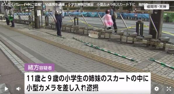 3日、福岡市天神で、博多どんたくのパレードを見に来ていた小学生のスカートの中を