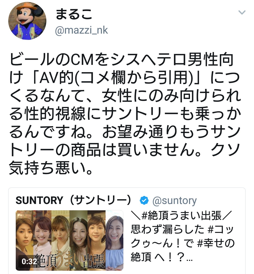 サントリーの商品で出来の悪いCMなんていくらでもあったし論点ズレすぎやわ