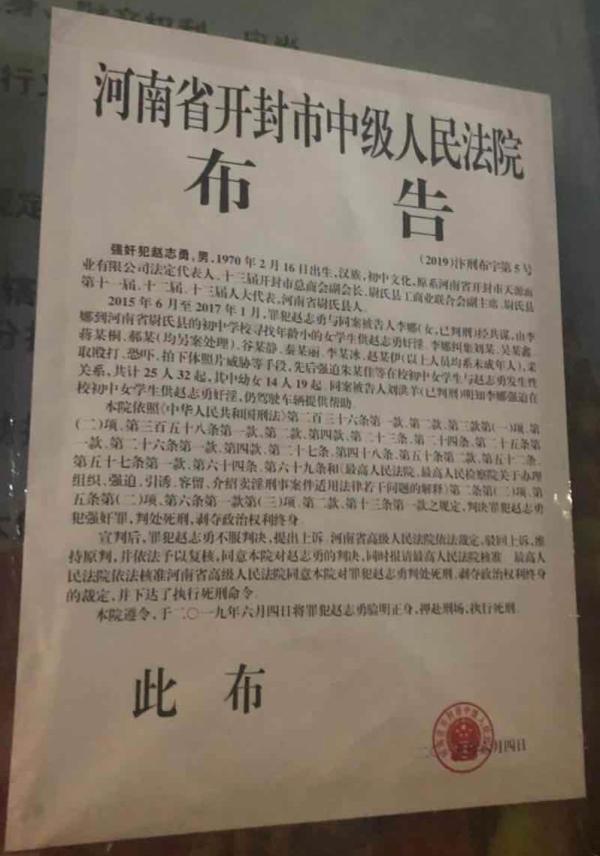 5日中国メディアの澎湃などによれば河南省開封市中級人民法院は前日、このような罪を犯した趙某氏(49)を刑場に押送して死刑にしたと公告した。