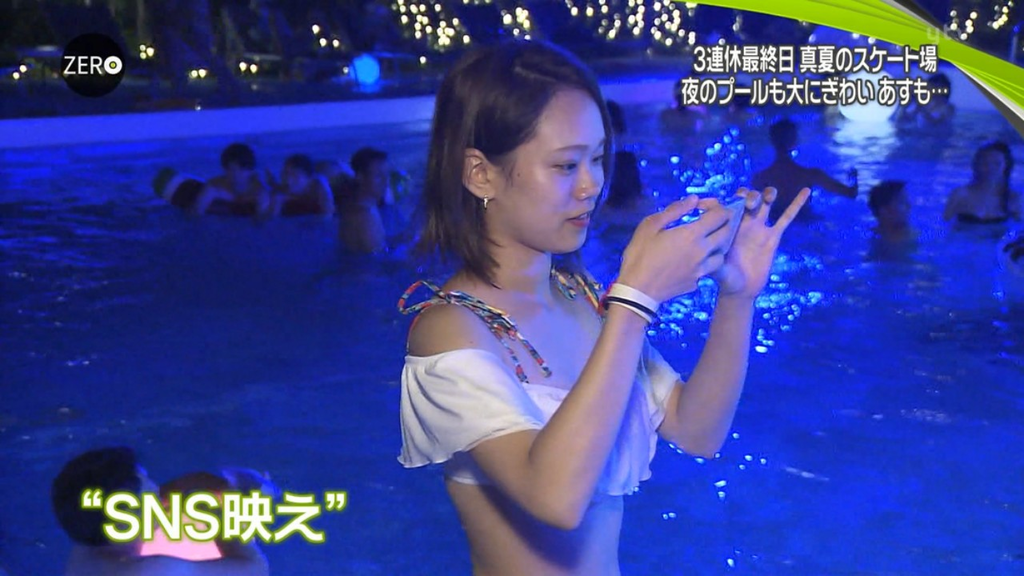 ナイトプールとは、カラフルな装飾で彩られた夜間営業のプール。そこで水着姿の写真を撮るのが、若者を中心に流行している。