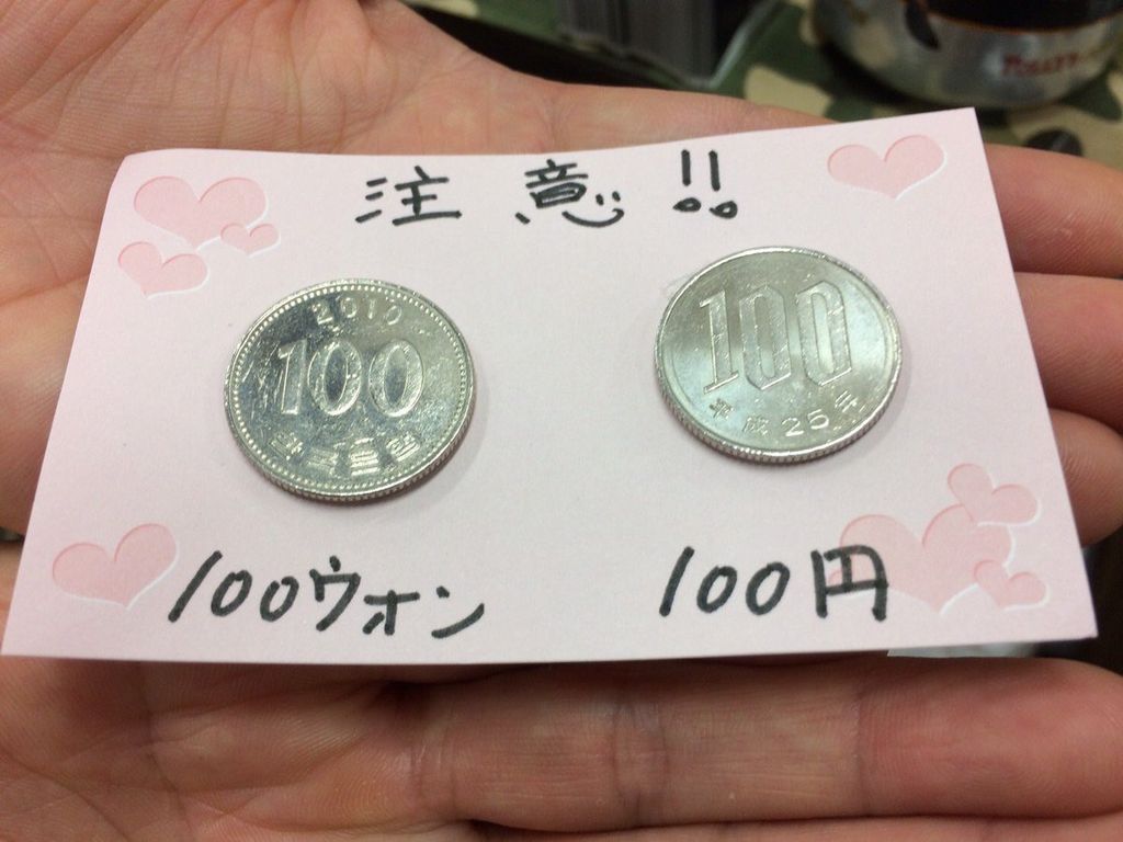 100円の中に100ウォンを混ぜて支払いをする輩がいるようです!