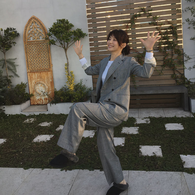 石田ゆり子が謎のポーズ5連発 パンツスーツ姿がオトナかわいすぎる