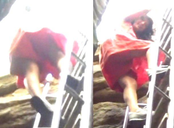 てカメラが先に降りて下からのアングルで多部を映すと、あわやパンチラというシーン