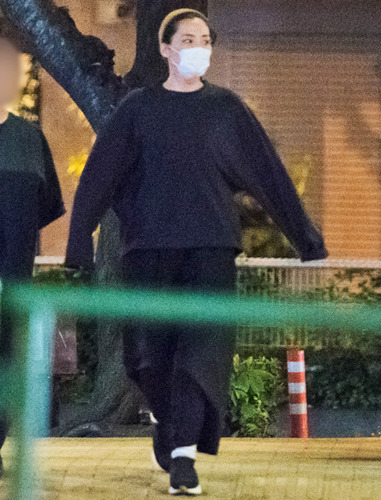 そんな共演直後の6月上旬のある夜20時過ぎ、恵比寿で評判のビストロに綾瀬の姿があった。トキメキ女子の雰囲気かと思いきや、この日は全身黒ずくめで、体のラインもまったく出ない一見ジャージー姿のような気の抜けた格好にも見える。“女優オーラ”を消し去るようなコーディネートだった。