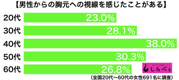 このデータに女子小中学生の回答は含まれていませんが、子供であっても確実に気がついていますので、大人の男性は「子供だから気づかれない」という気持ち悪い考えと行動は控えてほしいものです。