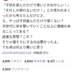 ママ「子ども産むだけで偉くない?次世代に命を繋ぐ以上に価値のあることってある?」→x民発狂
