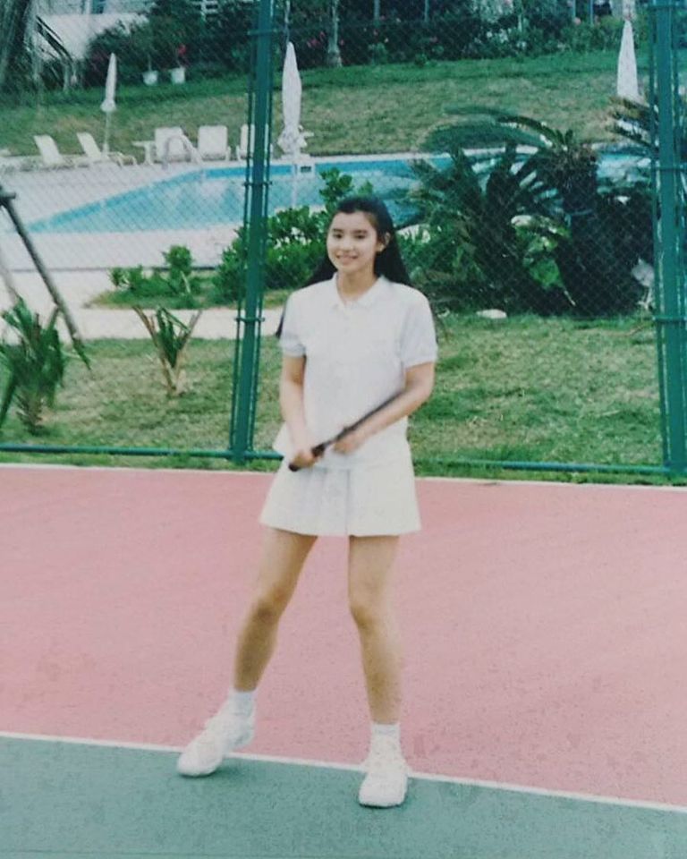 とのコメント付きで公開された写真には、全身真っ白のテニスウェアを纏いテニスコートに立つ石田の姿が。